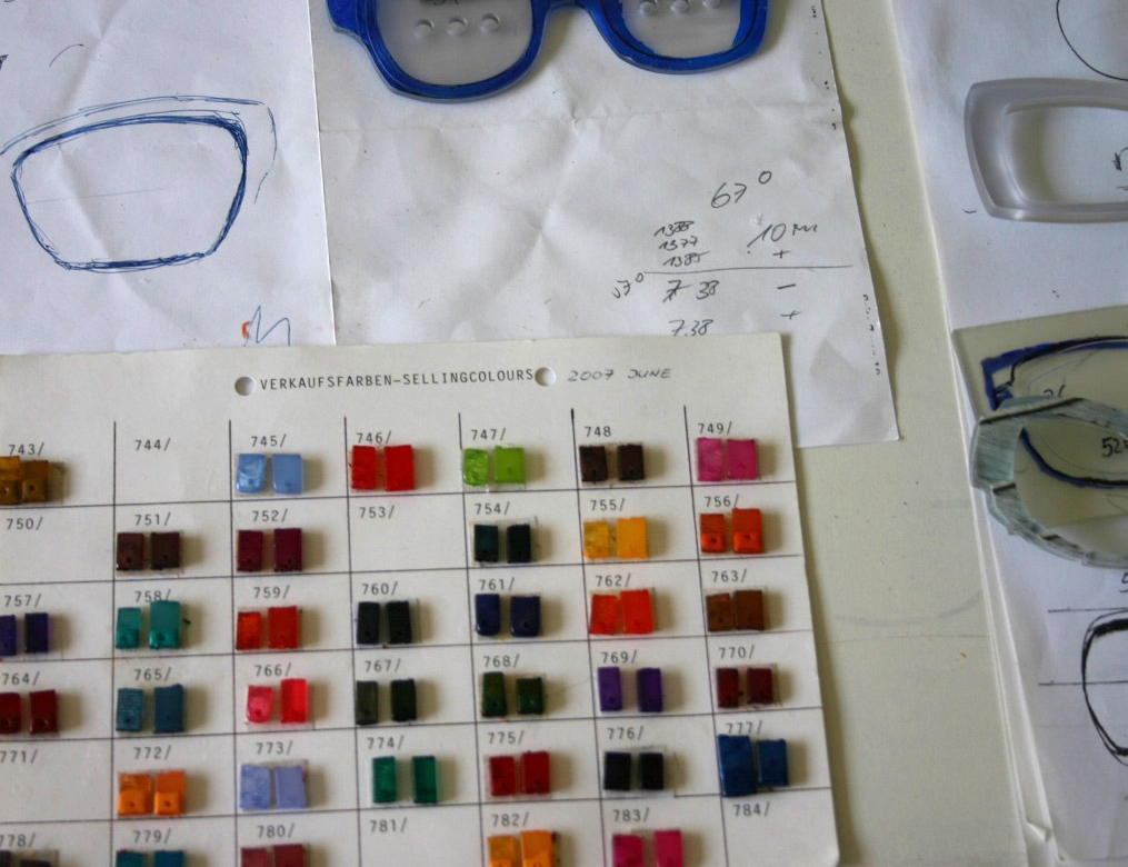 The hallmark of the manufactory and the designer are the frame colours. Every single colour, all colour combi-nations and colour play are reconceived again and again by the designer in the colour department where they are revised and adapted to the colour fashions of the seasons.